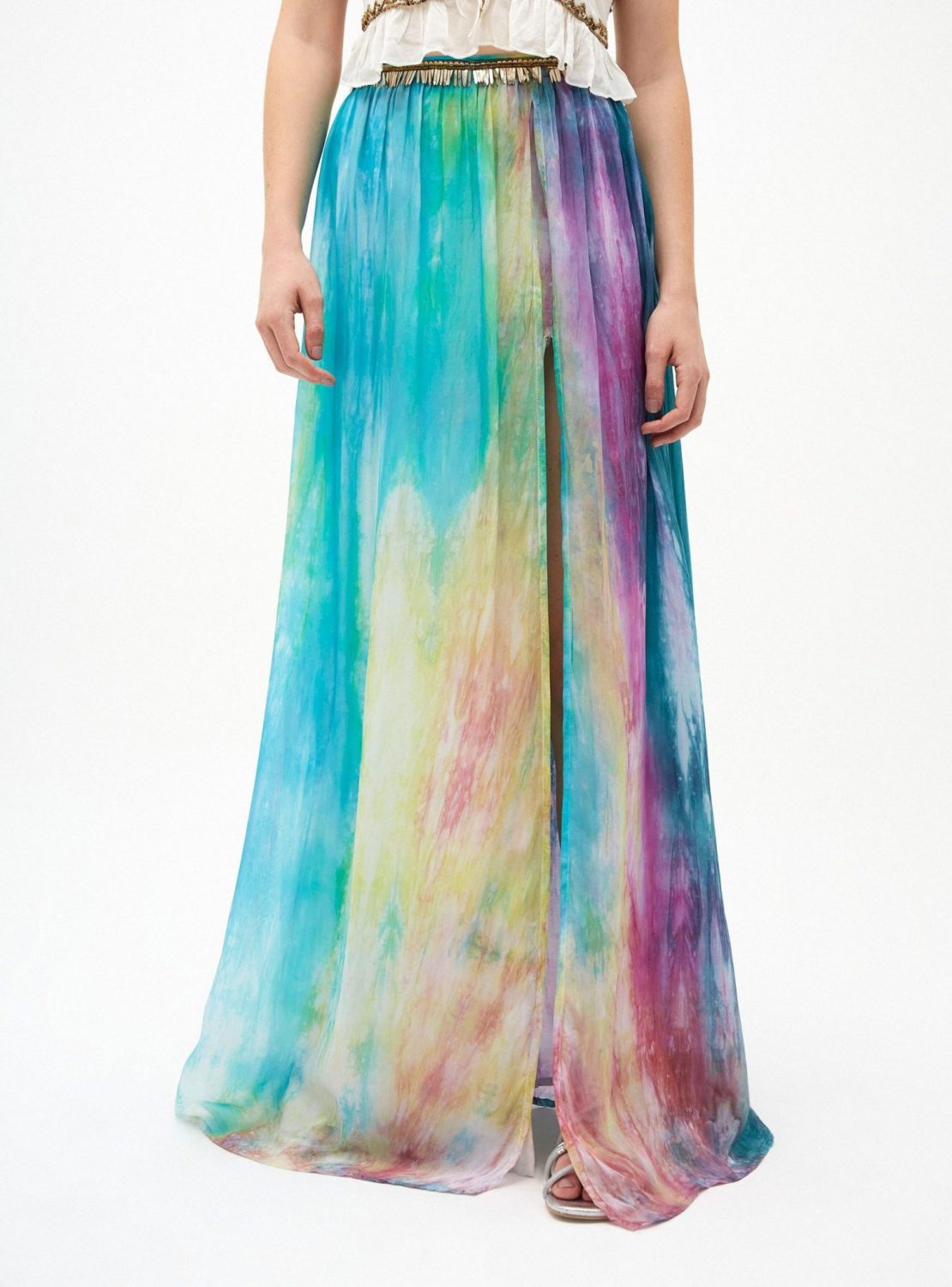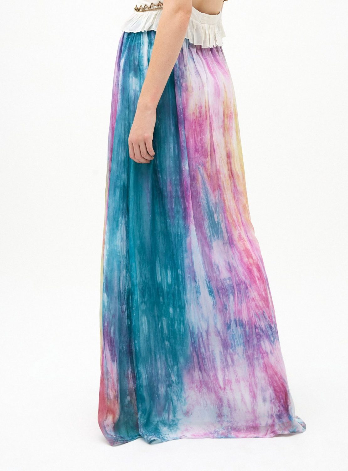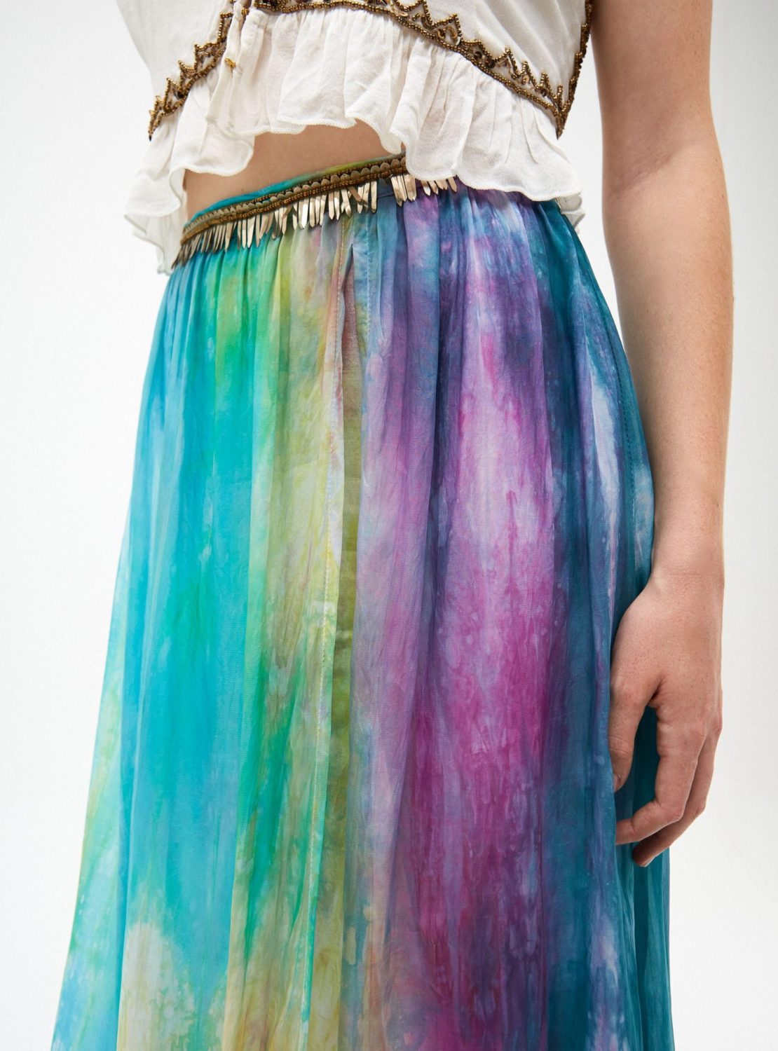 Maxi falda de seda teñida con técnicas artesanales indias.