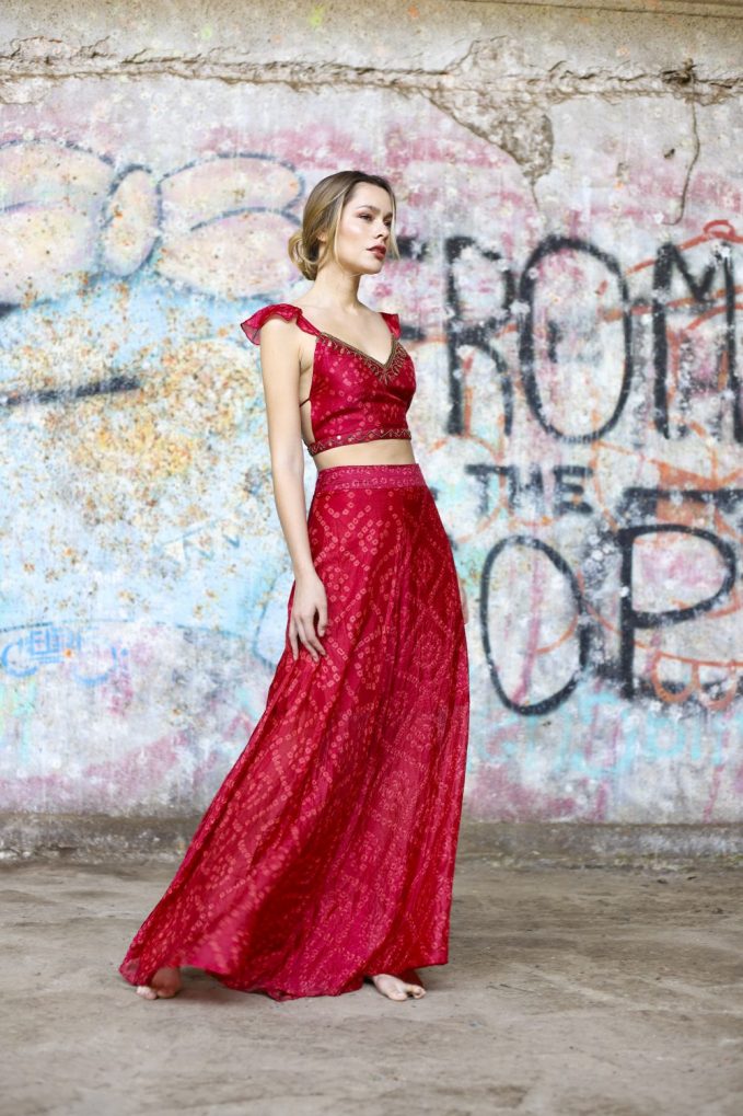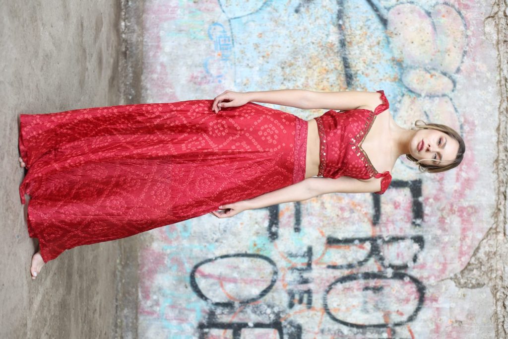 Maxi falda de seda teñida con técnicas artesanales indias.