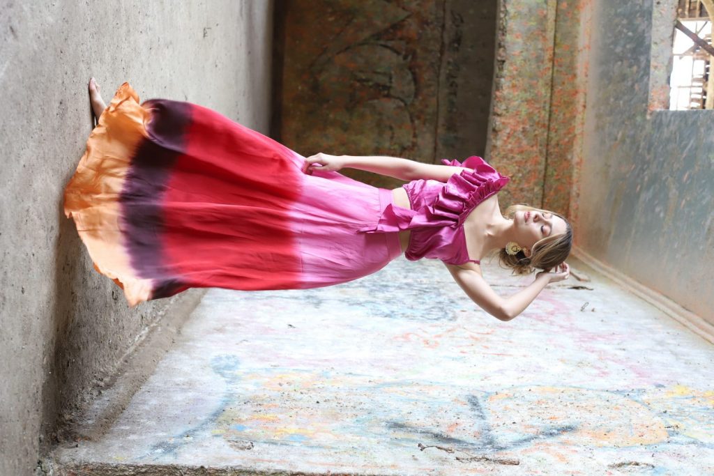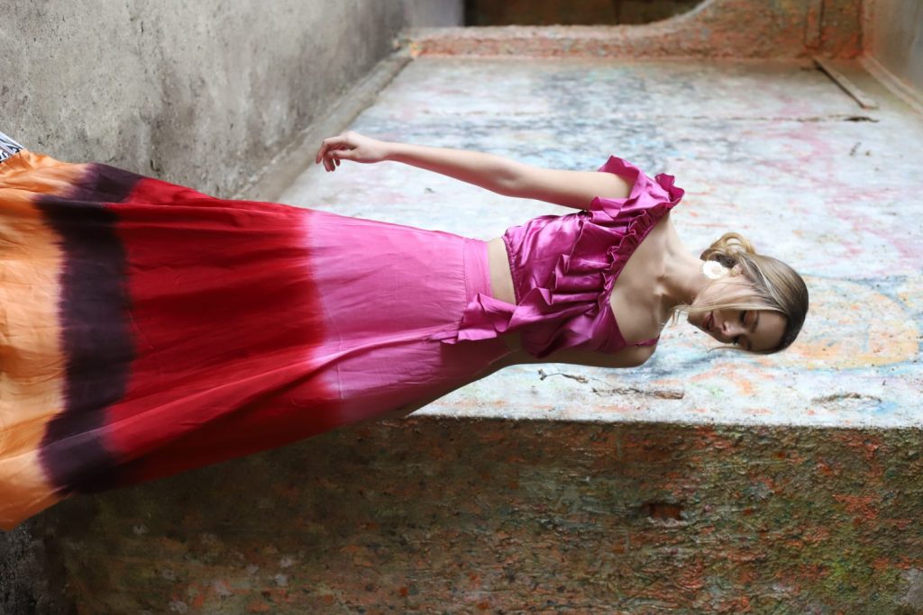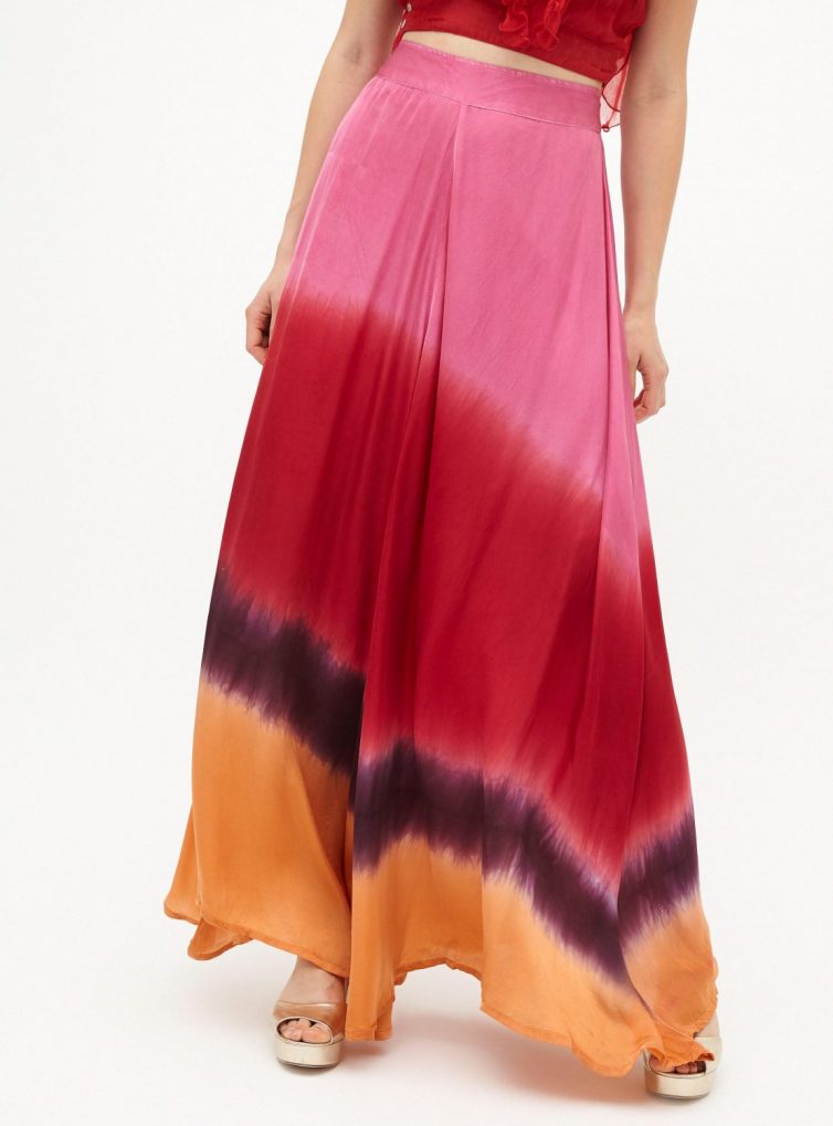 Maxi falda de seda teñida con técnicas artesanales indias.