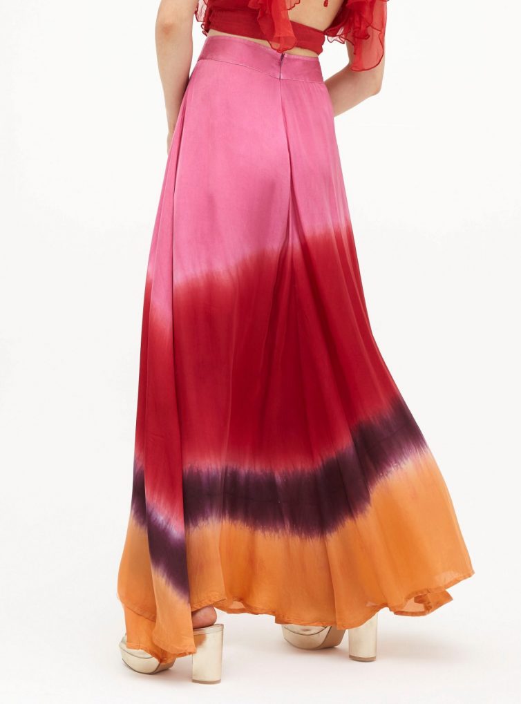 Maxi falda de satín seda teñida en combinación de colores.