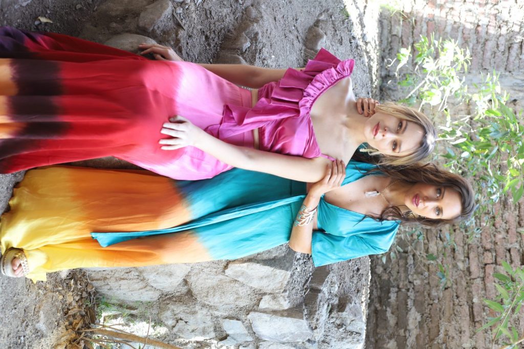 Maxi falda de seda teñida con técnicas artesanales indias.